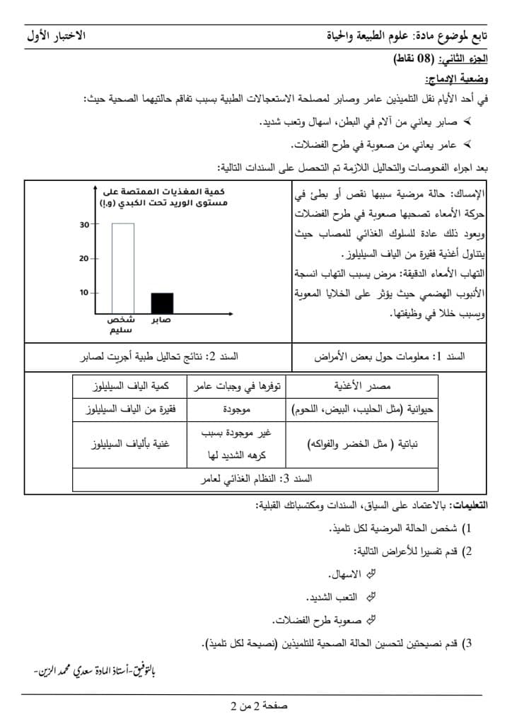 مادة العلوم الطبيعية للسنة 4 متوسط دروس مفصلة، فروض واختبارات، تمارين محلولة: نموذج اختبار في الفصل الأول رقم 3- في مادة العلوم الطبيعية مستوى السنة الرابعة متوسط الجيل الثاني
