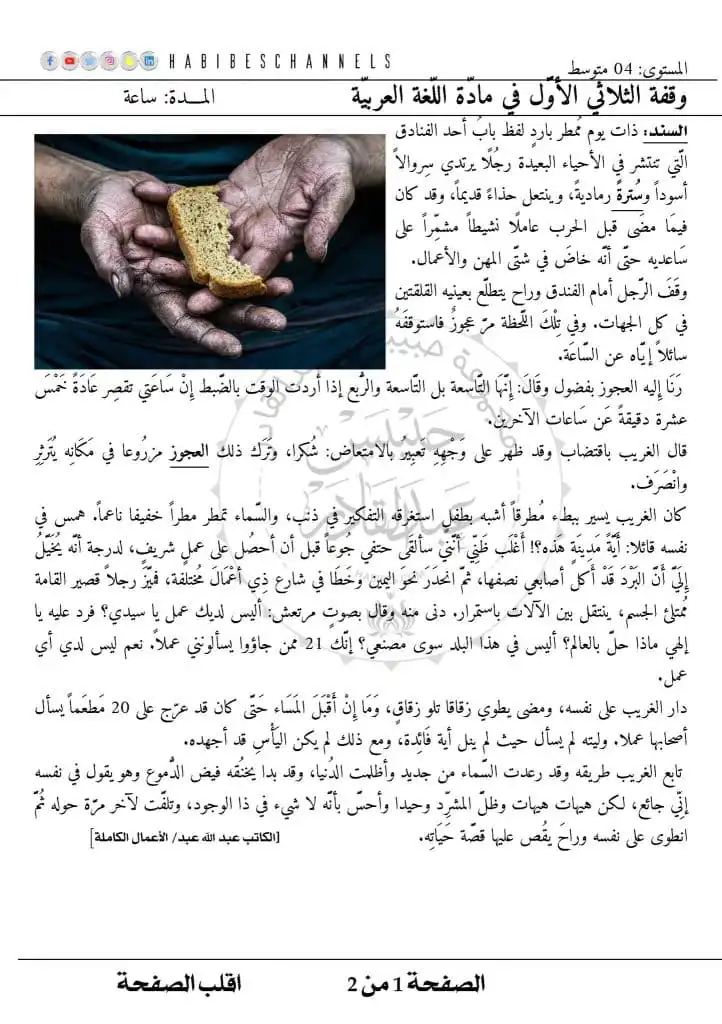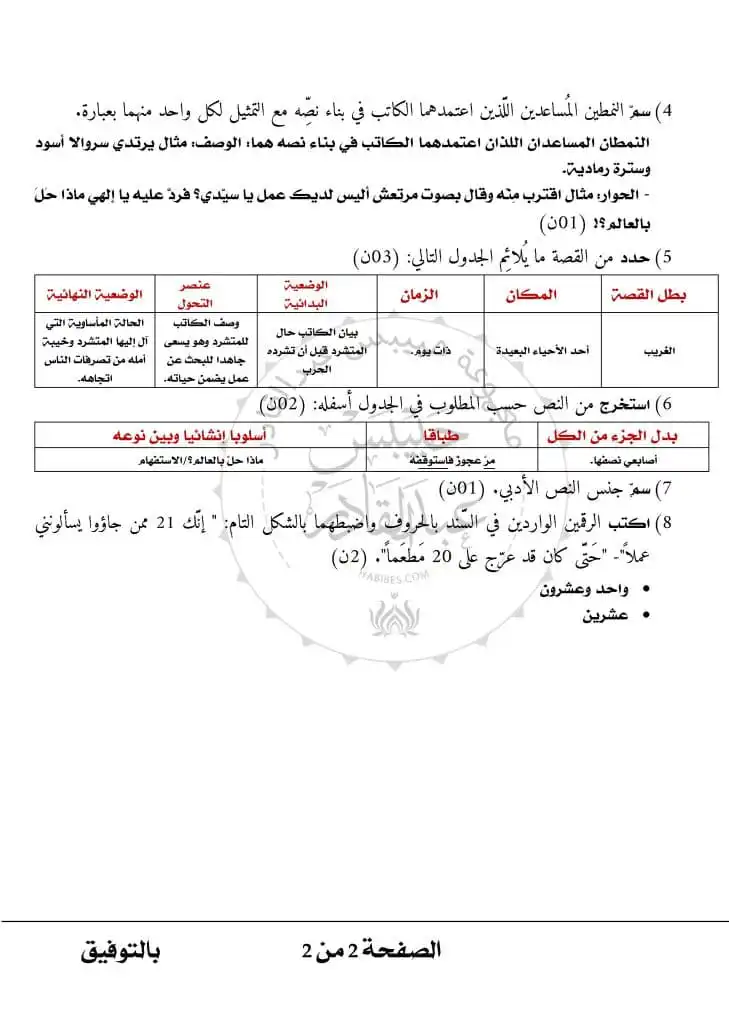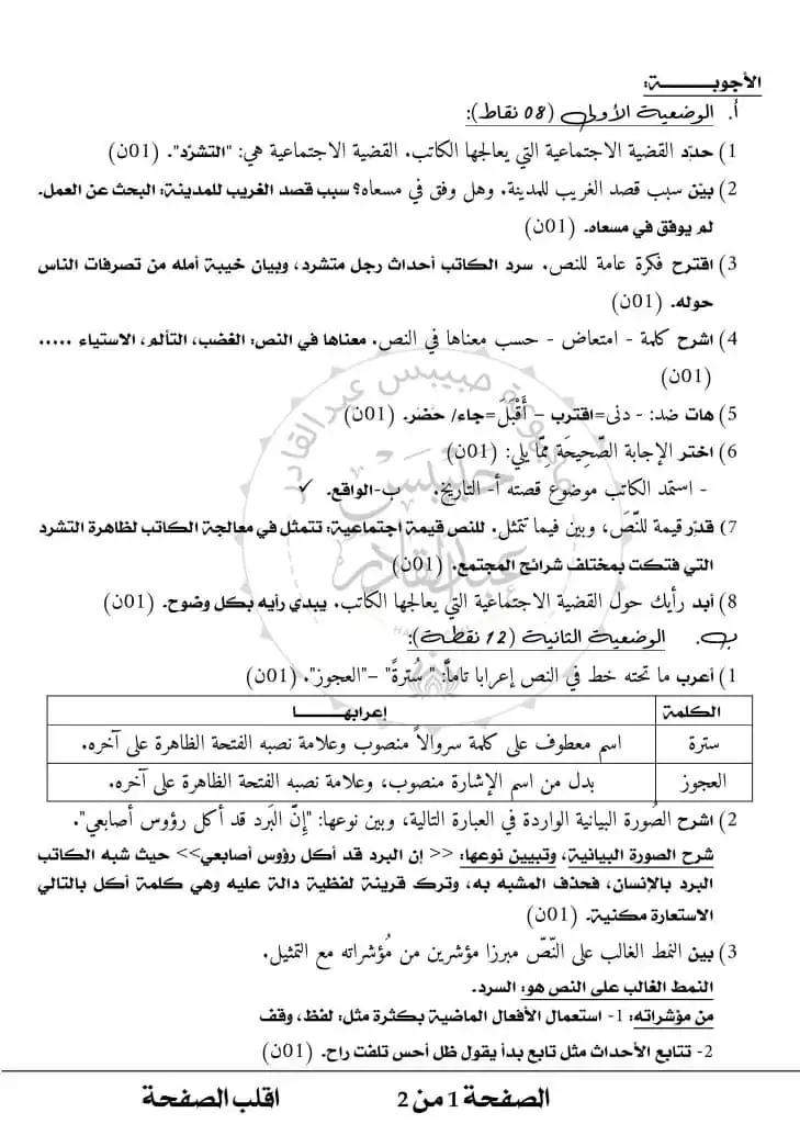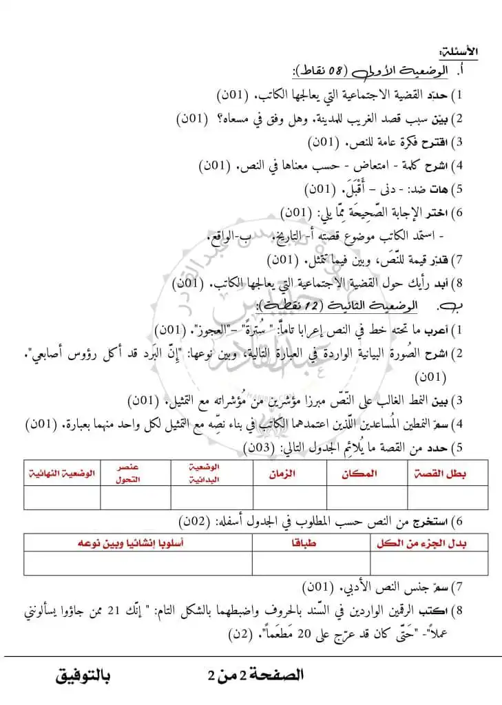 مادة اللغة العربية للسنة الرابعة 4 متوسط دروس مفصلة، فروض واختبارات، تمارين محلولة: نموذج لإمتحان في الفصل الأول رقم 6 – في مادة اللغة العربية مستوى السنة الرابعة متوسط الجيل الثاني مع التصحيح