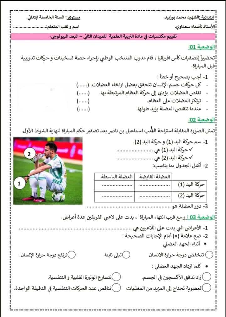 تقييم مكتسبات التربية العلمية الميدان 2 – البعد البيولوجي-